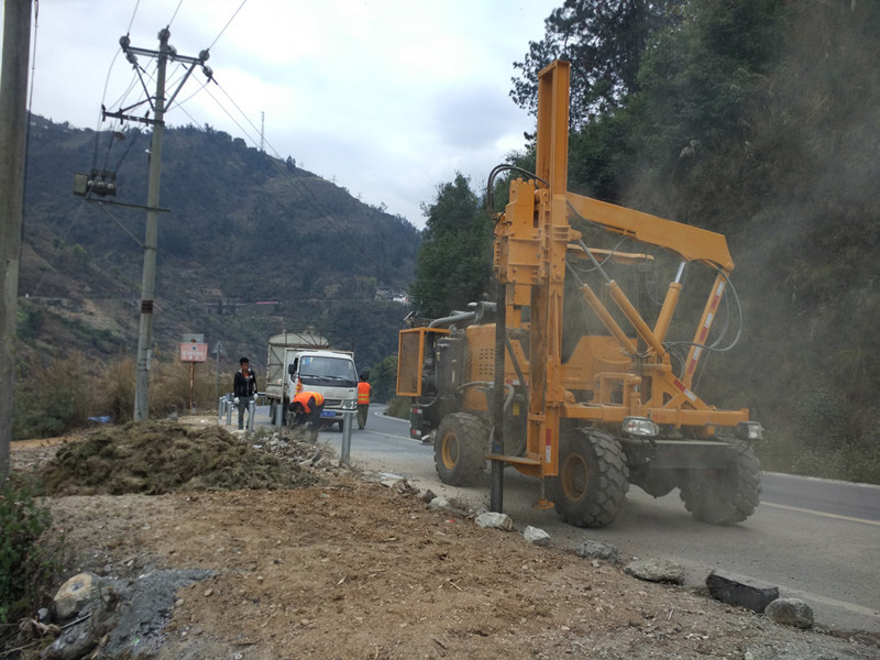 路特威公路打桩机性能强大,打出来的护栏桩非常深,而且也很规则。