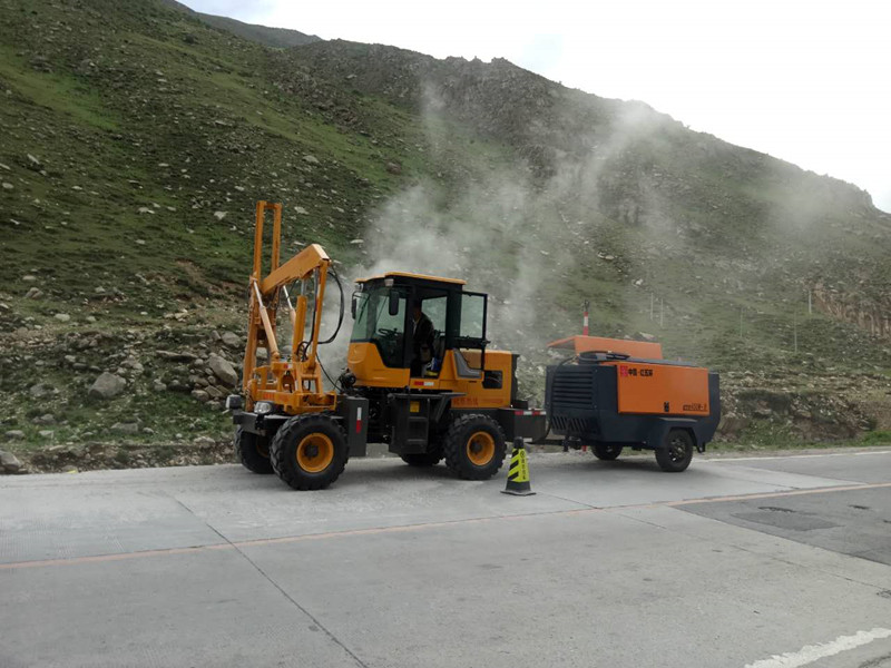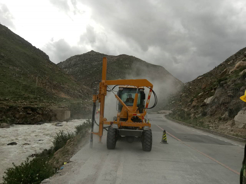 西藏的客户购买路特威机械的公路护栏打桩机,正在青藏高原的高速公路施工。