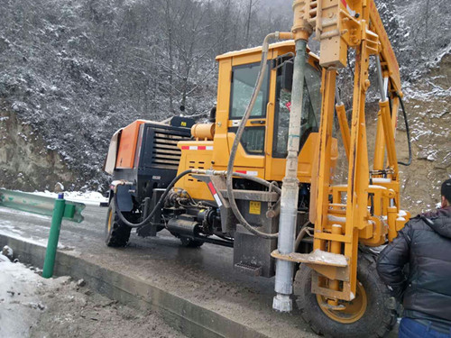 D型高效公路护栏打桩机型采用83kW涡轮增压柴油机,空压机选用的是8立方8公斤的螺杆式空压机,动力强劲,有效的保证了钻孔时的冲击力和排渣,提高施工效率。适用于市政、各级道路和乡村公路的安保建设施工。