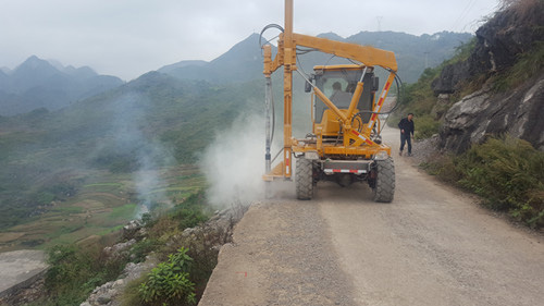 本设备机身小巧灵活,特别适用于道路较窄的乡村道路施工,采用一台发动机作为动力,同时为液压部分及空压机提供动力,整体燃油经济型较好,同时其配备的7立方空压机结构简单,维修方便,是钻浅孔作业(0.5-1米)的得力助手。