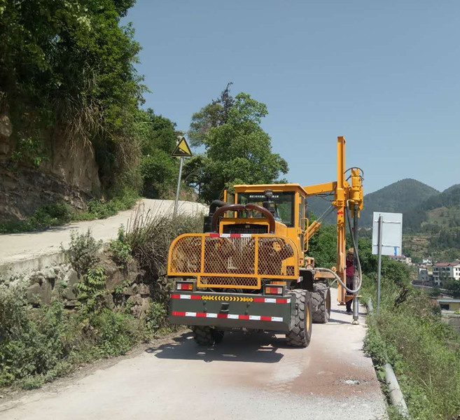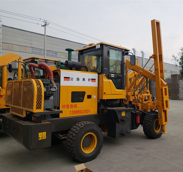 A型公路打桩机是根据设备在各种工况环境实践中使用的情况,通过不断的修正与改进,能够在各类复杂地层的公路护栏安装过程中,尤其能够体现它优质高效、经久耐用的特点。装载式护栏打桩机还具有:全天候施工,拖带空压机方便,断气刹更安全,使用寿命更长等特点。